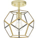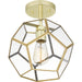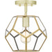 With its unique shape, Kinslee adds geometric flair to any number of spaces. The one-light semi-flush mount light features clear beveled glass and angular lines. Choose from either polished brass or matte black to make an eye-catching statement in the setting of your choice.