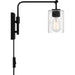 The clean, minimalist design of the Hodge wall sconce is a perfect addition to any room in your home. A clear crackle glass shade adds a touch of elegance to the classic matte black finish. The adjustable shade can be rotated to a multitude of angles, making this sconce perfect for task or accent lighting in a bedroom, home office or living room setting.