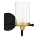 Available in either two, three, or four bulbs, the Rowland bath light can be positioned up or down to cast a unique illumination. This light, inspired by a modern farmhouse aesthetic, combines a matte black finish with brass-toned details. Clear glass shades beautifully maximize light.