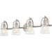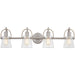 Embrace transitional design with the Stafford collection of bath and vanity lights. Curved Brushed Nickel arms and coastal inspired braided rope accents accentuate clear seeded glass shades. Choose from two, three or four lights in this versatile collection to enhance your bathroom decor today.