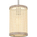 Pretty rattan detailing casts delightful shadows in the Syrah series, comprised of a mini pendant, island light, or semi-flush mount available in brushed nickel or matte black finishes. Part of the Quoizel Naturals line, this design evokes carefree style. Whether you live by the sea or in the city, Syrah adds easygoing refinement.