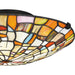 The prettiest puzzle. The Stinson table lamp, also available as a flush mount, fits together varying shapes and tones with multicolor art glass. The effect is artistic and impressive, finished with a matte black, curved base and pull chains for two bulbs.