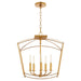 The Mantle 5 Light Dual Mount adds a touch of modernity to any design. The cage housing the candelabra sockets of the Mantle series is a slightly bloated pentagonal prism, which gives it the classic shape of a house. Inside the cage, five lights fitted with simple bobeches sit on curved rods that connect to a straight downstem. The light emitted is soft and warm, creating a cozy and inviting atmosphere. Whether used as the main light source in your living room or dining room or as an accent piece in a bedroom, entryway or hallway, Mantle series is sure to make a statement in gold leaf or matte black. Its distinctive design and high-quality construction ensure that it will be a fixture in your home for years to come, providing both timeless style and functionality.