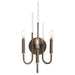 Sweeping curves and clear acrylic details give the Summit collection of lighting a distinct and contemporary aesthetic. A ring detail tops the slender stem with a cylindrical base that supports tiered U-shaped arms. Elegant and clean, the Summit 3 light wall mount comes in dark brass or textured black. Add the clean, modern Summit wall mount to your home's living room, dining room, entryway, or hallway design.
