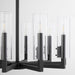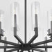 The Harbin 10-light Chandelier has beautifully strong and bold linear lines that make an impact. Tall, sleek cylindrical clear glass shades wrap around candelabra sockets connected to rectangular arms. Options of aged brass or textured black add to the versatility of the Harbin collection's design. Add a solid centerpiece to your design with this brilliant chandelier.