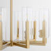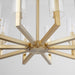 The Harbin 10-light Chandelier has beautifully strong and bold linear lines that make an impact. Tall, sleek cylindrical clear glass shades wrap around candelabra sockets connected to rectangular arms. Options of aged brass or textured black add to the versatility of the Harbin collection's design. Add a solid centerpiece to your design with this brilliant chandelier.