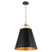 Quorum 861-3-5980 Three Light Pendant, Matte Black w/ Aged Brass