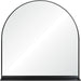 This mirror holds a balance in every regard. Fashion and function come together with a built-in shelf element and translucent black frame. A luxe vibe is juxtaposed by retro-inspired curves. Set in the modern entryway it sets the tone for a home that is lively and sophisticated in equal measure.
