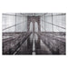 The industrial beauty of the Brooklyn Bridge is captured in the compelling angle of this modern print on canvas that celebrates the art of engineering. Perfect as a feature above a fireplace mantle or sweeping studio wall, the painting`s strong central perspective draws the eye toward the center of the canvas, allowing the architectural details of the bridge to shine. Hand-painted details in black and white tones enhance the photographic quality of this exquisite art piece, highlighting the wet wood plank walkway, geometric grid of steel cables and iconic neo-Gothic stone arches in stunning detail.