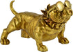 With his spiked collar, hardy stance and sunglasses, this gold bulldog statue is the epitome of canine cool. Cast from resin, the playful figurine of man`s best friend stands at attention on flat surfaces like shelves and tabletops throughout the home. The loyal pup protects personal belongings as it pops with a glamorous gilded metallic radiance.
