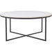 This coffee table`s exquisite elegance radiates across the contemporary living room. Thanks to a matte black powder coated legs, it is inherently strong and sleek, all while the natural white marble offers a light glow. With a 35 inch circumference and 15 inch height, its size provides plenty of versatility for arrangement.