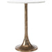 Opulent but never ornate, this side table brings glamor to the artistic interior. Featuring a blend of antique brass plated aluminum and natural white marble, it expertly holds the contrast of warm and cool tones. Whether set out purely for aesthetic or arranged for function, its 18-inch circumference and 23-inch height always holds grandeur.