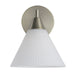 Combining the best of classic and modern design, the Bocca 1-light sconce delivers something special to any room. Crafted using high-quality materials, it features an on-trend yet timeless champagne plated finish for a dash of warmth and luxury. A cone-shaped fluted glass shade diffuses ambient light in any space it graces. Perfect for flanking a bed, lighting up a reading corner, shedding a warm glow in a dining room or anywhere else that could use a little illumination and charm, this light wall sconce is hardwired so no unsightly cords get in the way of its great looks. Light up your life the minute it's installed thanks to an included bulb and dimmer switch that lets you to customize the light level to suit your needs and mood.