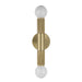 Double the illumination in any interior with the Tovi 2-light wall sconce. Crafted from high-quality burnished brass-plated iron, it has a rich and luxe look that complements many styles of decor. With two ways to hang it, try one vertically over a mirror or pair up a duo to flank a prized painting over a buffet to create instant drama in a dining room. The only limit to the placement of this beautifully modern light fixture is your imagination. Hardwiring keeps wires behind the scenes so there are no unsightly cords getting between this stunning light wall sconce and the perfect ambient light it sheds throughout the room.