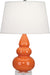 Pumpkin Glazed Ceramic With Lucite Base Small Triple Gourd Accent Lamp With Pearl Dupioni Fabric Shade