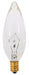 15 Watt BA9 1/2 Incandescent - Clear - 2500 Average rated hours - 114 Lumens - Candelabra base - 130 Volt