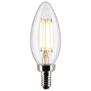 Satco's 4-watt clear, LED chandelier bulb with a candelabra base is dimmable and offers natural light and a 300 degree beam spread. Wet rated for kitchens and bathrooms, the carded 2-pack is suitable for retail display. Elegant and long-lasting, this clear bulb delivers 15,000 hours of exceptional illumination.