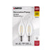 Satco's 3-watt clear, LED chandelier bulb with a candelabra base is dimmable and offers warm white light and a 300 degree beam spread. The carded 2-pack is suitable for retail display. Elegant and long-lasting, this clear bulb delivers 15,000 hours of exceptional illumination.