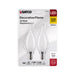 Satco's 4-watt frosted, LED chandelier bulb with a candelabra base is dimmable and offers warm white light with a 300 degree beam spread. Wet rated for kitchens and bathrooms, the carded packaging is suitable for retail display. Elegant and long-lasting, this frosted bulb delivers 15,000 hours of exceptional illumination.