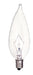25 Watt CA9 1/2 Incandescent - Clear - 2500 Average rated hours - 212 Lumens - Candelabra base - 120 Volt