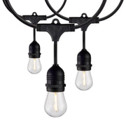 Create a classic look with Satco's new energy saving LED string lights. Sold in a convenient 2 pack, these 24 foot LED decorative string lights will transform any space into a stylish evening experience. Each of the two strands includes 12 energy efficient, vintage style, Edison LED light bulbs which deliver a perfect warm glow and old-world charm in a thoroughly modern design. Featuring a heavy duty, weatherproof cord with slots for easy bulb installation, these portable lights are versatile and can be used to illuminate any number of areas both inside or outside your home.