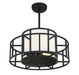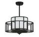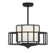 The Savoy House Oslo Fan D'Lier makes a beautiful visual statement in any room. In addition to serving as a fashion-forward chandelier with a white fabric shade and a sculptural outer frame in a matte black finish, Oslo is equipped with a functional ceiling fan cleverly concealed within its 12.9" high x 26" wide frame. Illumination is provided by four standard size bulbs.