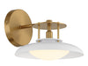 This Savoy House Gavin 1-light sconce brilliantly combines vintage and midcentury modern style touches to create a thoroughly modern take on illumination. Gavin uses a white etched glass shade and a wide metal shade to soften and direct the light. Finished in white with warm brass accents. Gavin is 8" in height, 9" in width and extends from 10" the wall. Damp area rated.