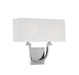 With the casual charm of an elongated horseshoe shape, the Rhodes Collection is an ideal space-saving solution in a variety of traditional and transitional interiors. Measuring 14" wide x 12" high x 4" extension, the two-light wall sconce offers ample illumination from two 60-watt candelabra bulbs. A white Linen shade keeps the look neutral while the polished nickel finish provides more contemporary allure.