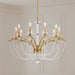 Light dances along bejeweled strands below playfully cantilevered arms for a whimsical flourish. A statuary column of Bohemian crystal stands aloft to present a new take on Neoclassical Revival.