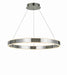 Emeri collection in Chrome illuminates from the top and bottom of the metal ring. 60W integrated LED, 3000K 80+ CRI, 5400 Lumens. Adjustable heights upon installation, dimmable with Triac dimmers. 5 year warranty.