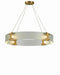 Lyra collection in Gold has textured glass to diffuse the halogen bulbs. Adjustable heights upon installation, dimmable with Triac dimmers.