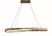 Oakley collection in Brushed Gold in an oval shape has whimsical rings that twist like a wave enhanced with faux crystal illuminated by 100W LED, 3000K integrated bulbs 80+CRI, 9000 Lumens. Adjustable heights upon installation, dimmable with Triac dimmers. 5 year limited warranty.