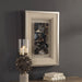 A Collection Of Natural Agate Stones In Tones Of Cool Blues And Tans, Set Under Multi-layered Matting In Flecked Oatmeal Linen And Encased In A Brushed Silver Pine Shadow Box. Each Piece Will Vary Slightly.