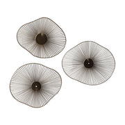 This Contemporary Set Of Three Metal Wall Art Features 3-dimensional Organically Curved Shapes With Radiating Metal Spokes, Finished In A Plated Gold With Mirrored Center Accents. Sizes: Sm-16x13x2, Med-20x18x3, Lg-25x21x3