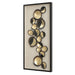 An Artful, Layered Assortment Of Serrated Edge Iron Discs Accented With Gold Leaf Centers. The Artwork Is Displayed Over A Light Oatmeal Linen Backing In A Satin Black Finished Shadow Box Frame Under Glass. May Be Hung Horizontal Or Vertical.