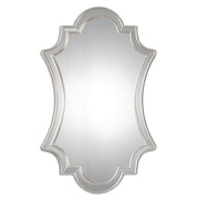 Gracefully Curved Polished Edged Mirror Facets Encased In A Lightly Antiqued Silver Leafed Frame.