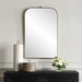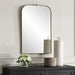 Encased In A Sleek Stainless Steel Frame, This Vanity Arch Mirror Features A Lustrous Brass Plated Finish, Elegantly Surrounding A Floating Polished-edge Mirror And Topped With A Classic Ball Finial.