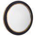 This Round Mirror Features A Black Mirrored Tile Frame And Is Clad In An Antique Brass Finished Metal Sheeting. The Piece Has A Generous 1 1/4" Bevel.