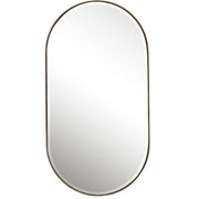 The Lago Oval Features A Petite Iron Frame Surrounding The Bevel Mirror With A Deep Edge That Shows Off The Antiqued Golden Bronze Finish. Mirror Has A Generous 1" Bevel.