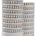 Set Of Two Ceramic Vases Finished In A White Glaze With Taupe Accents, Beaded Texture And A Ribbed Interior. Sizes: S-5x14x5, L-5x18x5