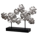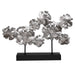 Inspired By Lotus Flowers, This Sculpture Is Finished In A Contemporary Silver Leaf With Noticeable Texture And Distressed Details. The Piece Is Supported By An Iron Foot Finished In Matte Black.