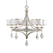 Burnished Silver Champagne Leaf Finish With Modern Clear Crystal Accents Highlight This Majestic Chandelier Along With Silken Off-white Hardback Shades. 5-60 Watt Max, Candelabra Sockets. Bulbs Not Included. Supplied With 20' Wire And 7' Chain For Adjustable Installation.