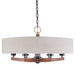 Unique Curved Wood Arms Combined With Modern Oatmeal Linen Fabric Hanging Outer Shade Give This 6 Lt. Chandelier A Clean Update Feel. Special Woven Mesh Shades Offer A Distinctive Detail Along With The Dark Bronze And Antique Brass Accents. 6-60 Watt Max, Candelabra Sockets. Bulbs Not Included. Supplied With 20' Wire And 7' Chain For Adjustable Installation.