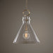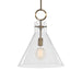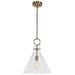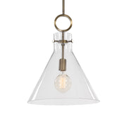 Playful Funnel Shaped Clear Glass Bestows An Almost Whimsical Touch To The Clean Design Of This 1 Lt. Pendant With Aged Brass Strengthening The Modern Line. 1-100 Watt Max, Edison Socket. Bulb Not Included. Supplied With 15' Wire, 3-12" Stems And 1-6" Stem For Adjustable Installation.