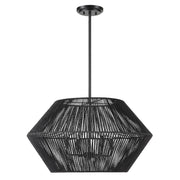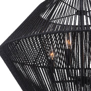 Natural Rope Is Hand Wrapped And Dyed A Chic Black To Form The Shade Of Our 4 Lt Pendant Giving Both An Adventurous & Dressed Up Feel In Matte Black. 4-60 Watt Max Candelabra Sockets. Bulbs Not Included. Supplied With 15' Wire, 3-12" Stems And 1-6" Stem For Adjustable Installation.