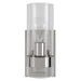 Clean Modern Lines Enhance This 1 Lt. Sconce Featuring A Wide Rings Holding The Clear Cylinder Glass Yielding A Floating Effect, Finished In Polished Nickel. 1-60 Watt Max, Edison Socket. Bulbs Not Included.