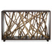 The Teak Maze Console Is Sure To Make A Statement In Any Space. This Beautifully Unique Piece Is Constructed From Solid Mahogany Wood In A Rich Walnut Stain With Natural Gathered Teak Branches Artfully Arranged Within The Frame.