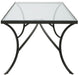 Gracefully Arched Hand Forged Metal Finished In Sleek Satin Black. Top Is Clear Beveled Tempered Glass.