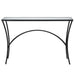 Gracefully Arched Hand Forged Metal Finished In Sleek Satin Black. Top Is Clear Beveled Tempered Glass.