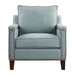 Supportive Comfort In A Transitional Club Chair, With A Subtle Woven Argyle Pattern In Light Sea Mist, Accented With Antique Brass Nail Head Trim On Solid Oak Legs Finished In Dark Walnut.
